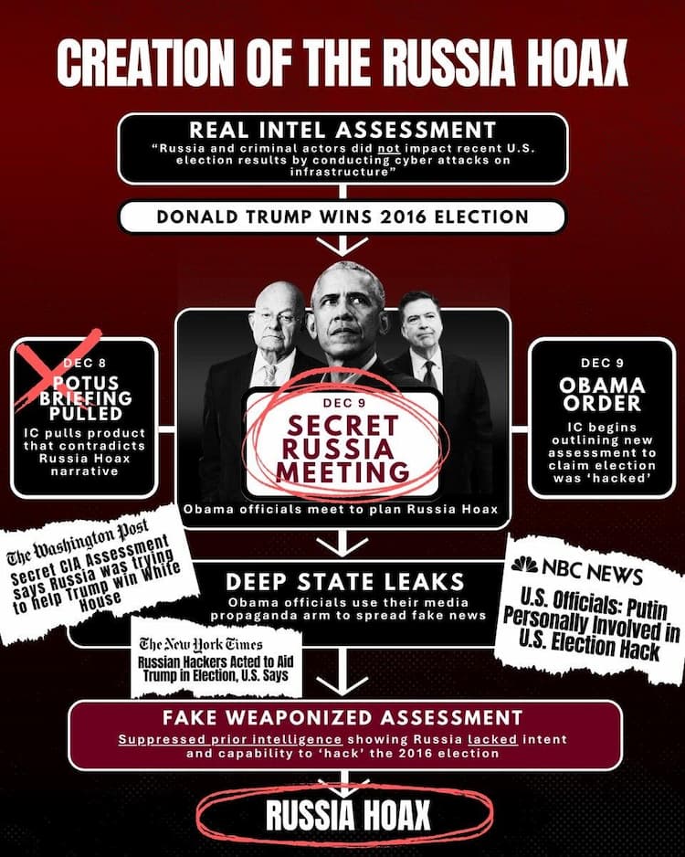 On January 6, 2017, just days before President Trump took office, DNI Clapper unveiled the Obama-directed politicized assessment, a gross weaponization of intelligence that laid the groundwork for a years-long coup intended to subvert President Trump’s entire presidency.