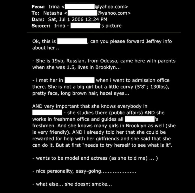 The emails shed light on Epstein’s alleged recruitment tactics, showing how his female associates regularly sent him photos and profiles of young women — including details about their age, personality, jobs, ethnicity and physical appearance, according to screenshots obtained by Bloomberg.