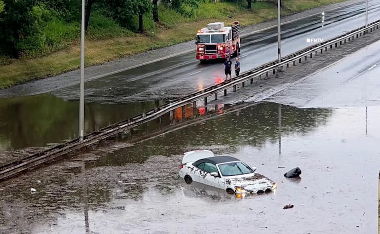 The Clearview Expressway in Queens was left underwater, trapping a semi-truck and several cars, authorities said.