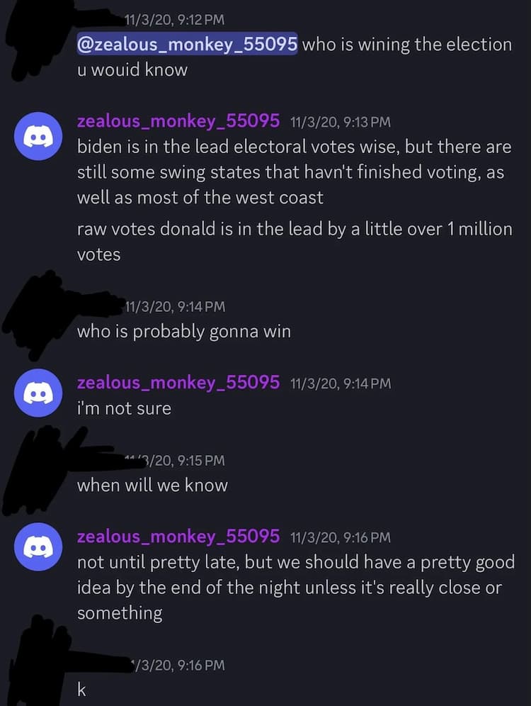 “The last message is religious in nature which just goes to show the apolitical nature of the server, we all have pretty differing views on politics,” the friend said of the discord post. “We all just exist as friends and just play stuff.”