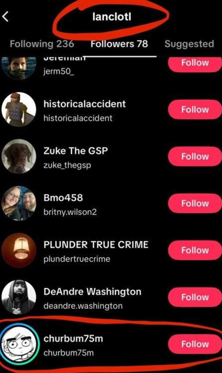 The morbid quip was reposted by an account named "churbum75m (SAW TYLER JUNE 30)," who appears to follow Robinson’s roommate, Lance Twiggs, on TikTok, where Twiggs’s username is "lanclotl."